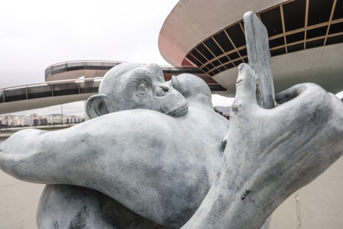 As obras retratam primatas com corpos humanos manipulando celulares, câmeras e óculos de realidade virtual — uma crítica ao impacto da tecnologia nas relações sociais. O próprio artista visitou e escolheu os locais onde as obras serão expostas em Niterói.